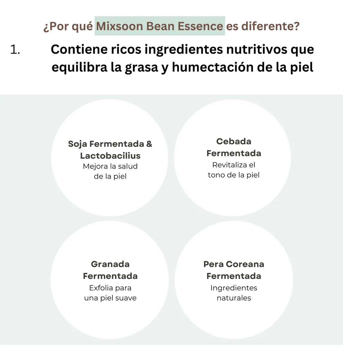 Sí, la fórmula de Mixsoon™ es minimalista y con ingredientes fermentados naturales (soya, cebada, pera y granada), diseñada para hidratar y exfoliar suavemente sin causar irritación, incluso en piel sensible.