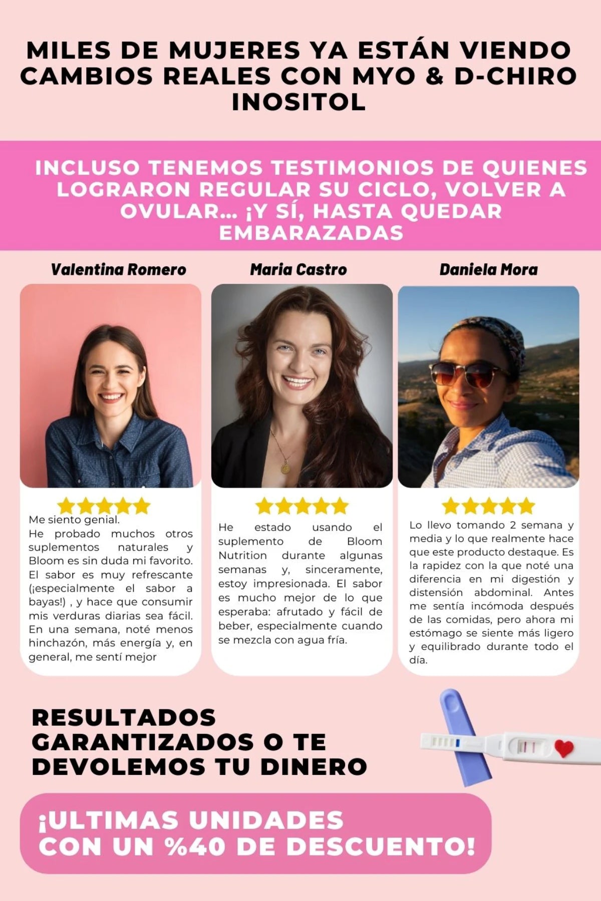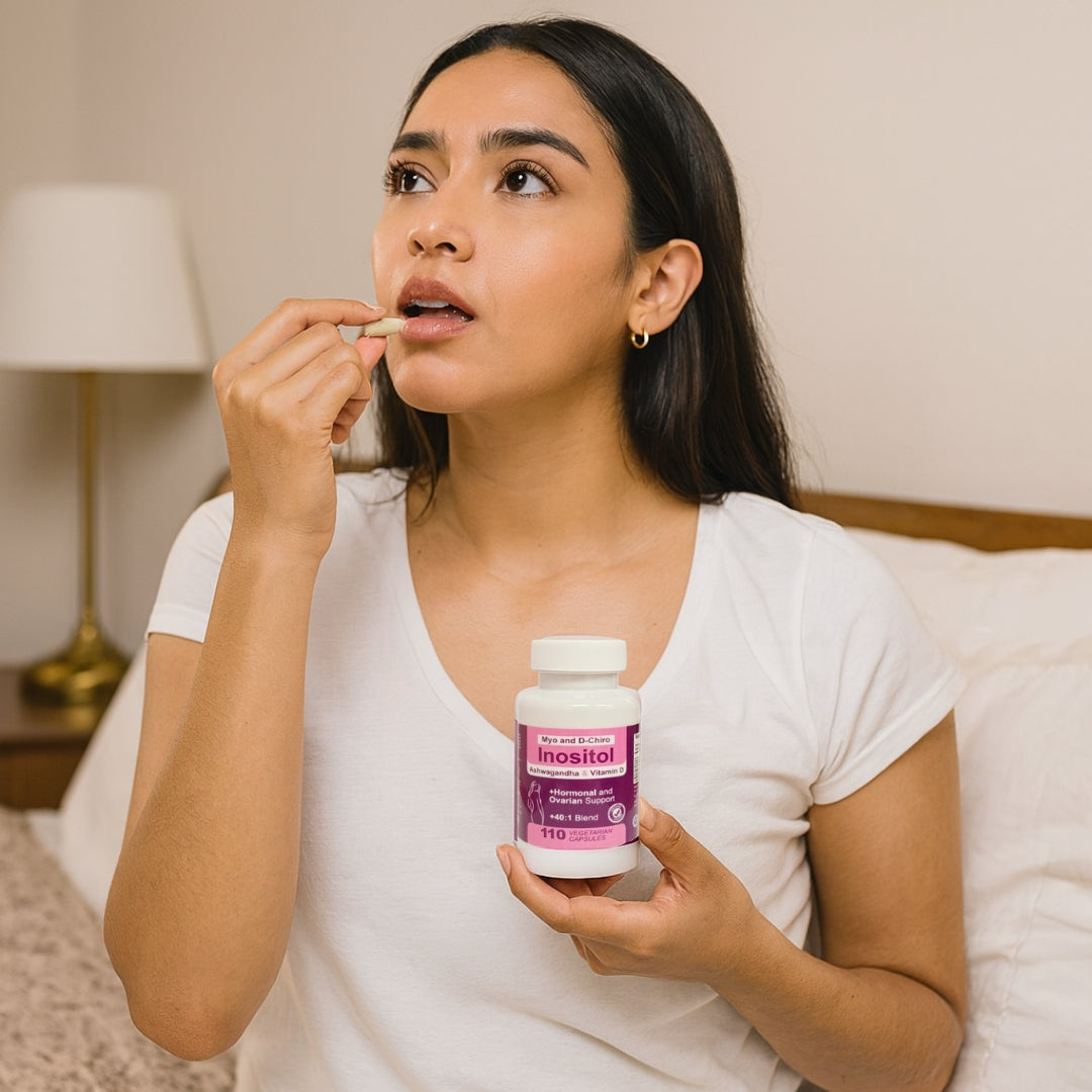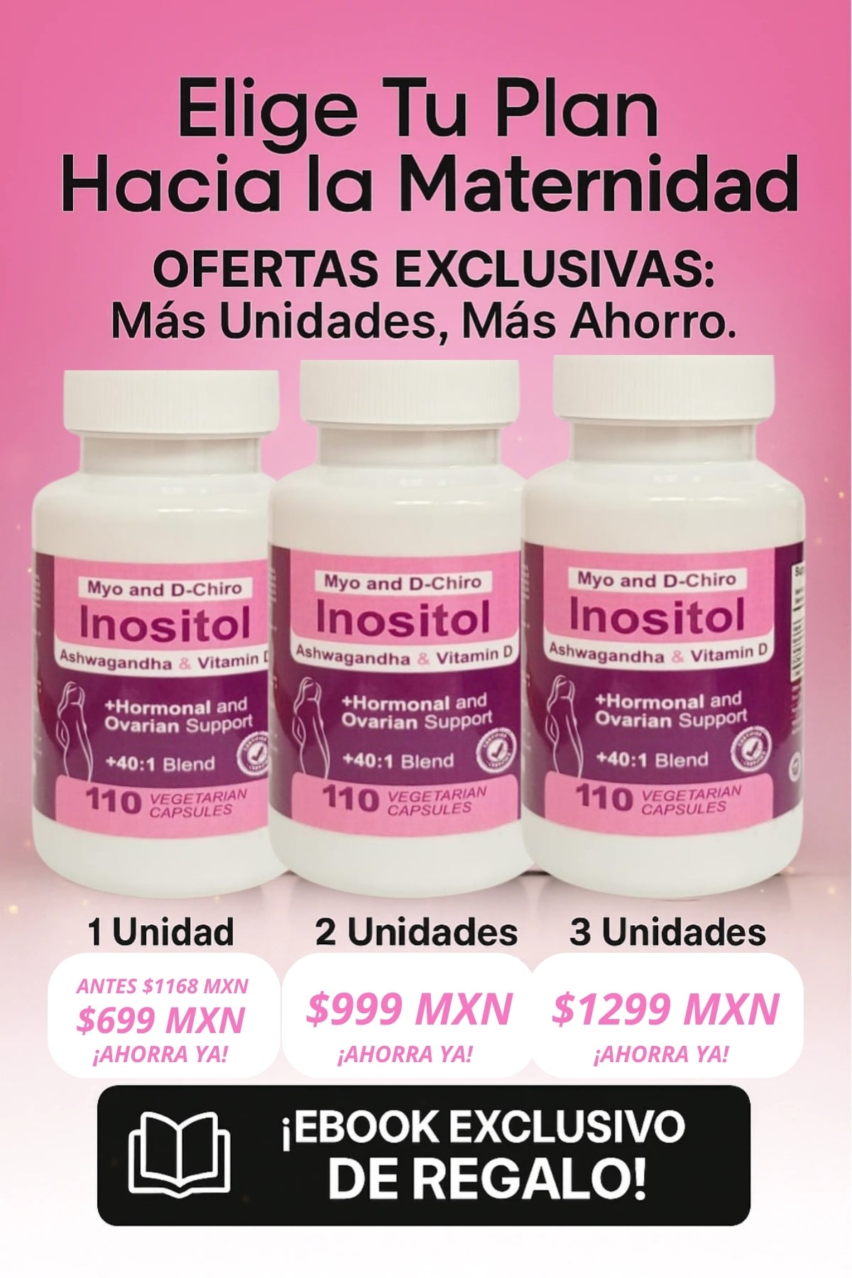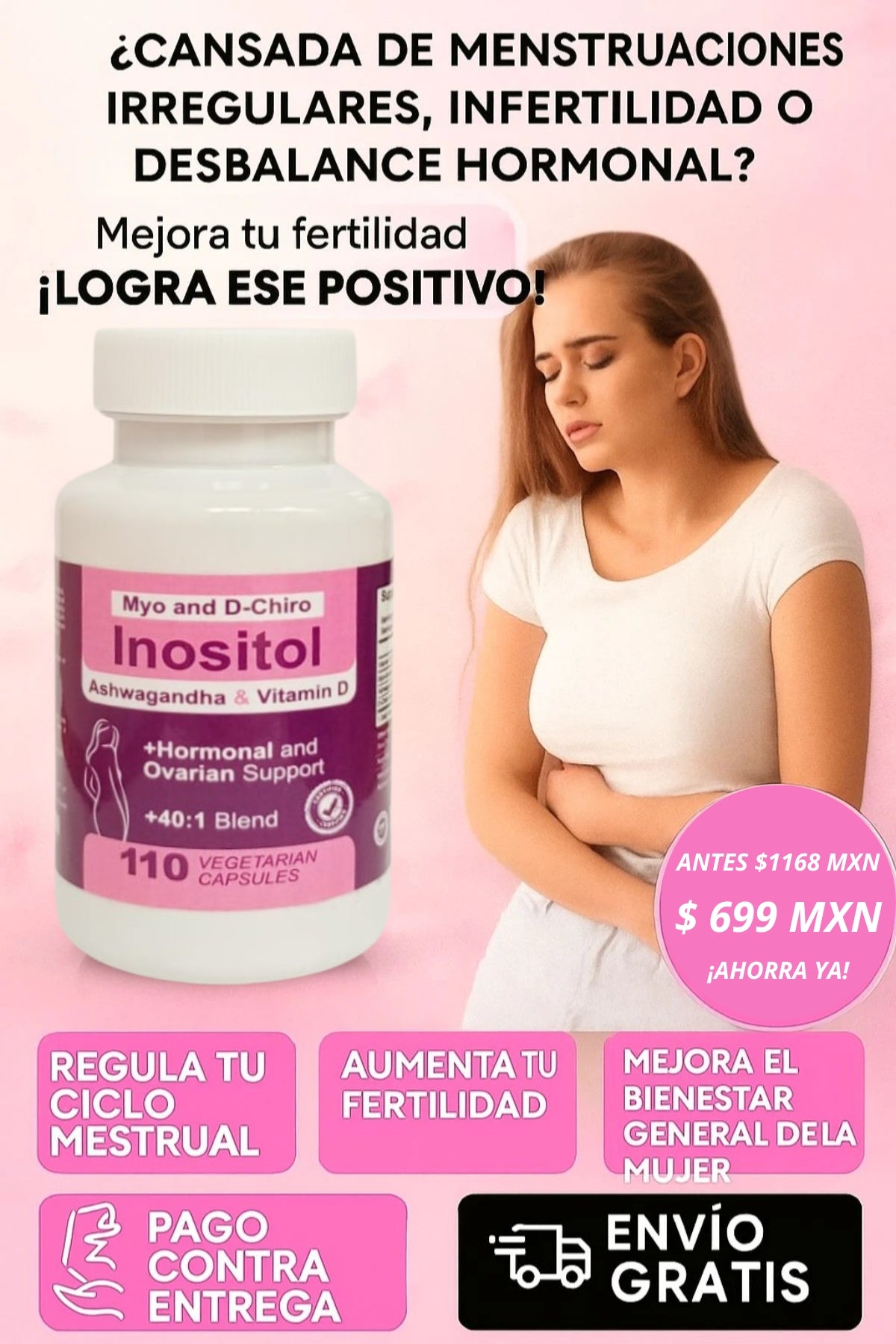 Cada cápsula combina Myo-Inositol y D-Chiro Inositol en proporción fisiológica 40:1, junto con Vitamina D y Ashwagandha. Esta fórmula está diseñada para favorecer la función ovárica, la regularidad del ciclo y el manejo del estrés, ofreciendo un soporte integral que otros suplementos no incluyen.